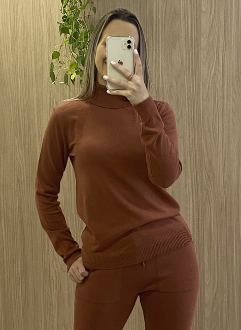 Possui mangas longas, além de acabamento canelado na gola, nos punhos e na barra, assegurando melhor estrutura, alinhamento da peça e maior durabilidade. O tricô encorpado mantém o caimento uniforme mesmo após o uso contínuo.