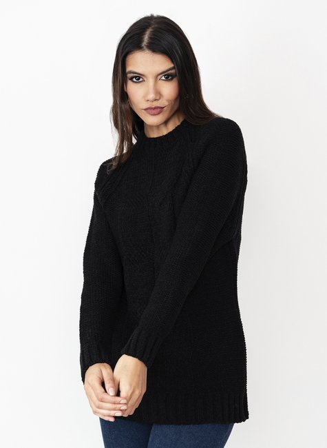 O destaque da peça está na trança central trabalhada, que cria um efeito vertical elegante e ajuda a alongar visualmente a silhueta. As mangas longas e o acabamento canelado nos punhos e na barra garantem melhor ajuste ao corpo, enquanto a gola redonda mantém a proposta clássica e atemporal da peça.
