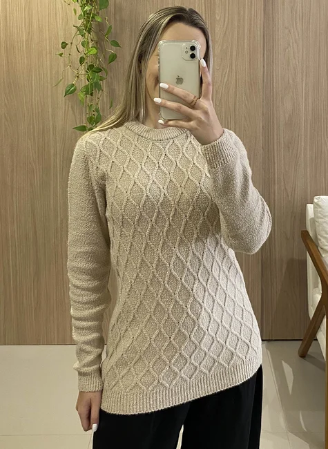 Confeccionada em 100% Acrílico de alta qualidade, a blusa oferece excelente retenção de calor, toque macio e durabilidade. O acrílico proporciona conforto térmico, leveza e resistência ao uso diário, mantendo a aparência da peça por muito mais tempo. Uma opção elegante, confortável e versátil para elevar o guarda-roupa de inverno.