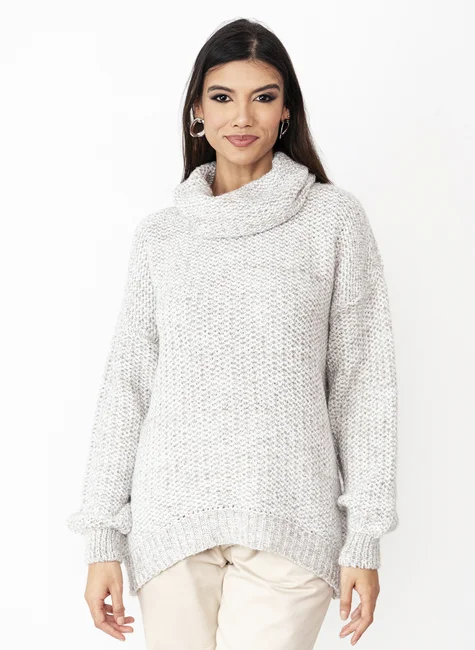 A gola alta é o grande destaque do modelo, trazendo charme e funcionalidade. Além de valorizar o visual, ela oferece maior proteção térmica para os dias mais frios, garantindo aconchego sem abrir mão da elegância. As mangas amplas e o acabamento estruturado reforçam o design atual da peça, enquanto a barra levemente alongada contribui para um caimento impecável.