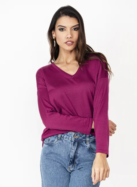 Com mangas longas e acabamento canelado nos punhos e barra, a peça oferece melhor ajuste ao corpo sem comprometer o conforto. O comprimento levemente alongado favorece diferentes silhuetas e possibilita o uso tanto por dentro quanto por fora da parte de baixo, tornando a blusa ainda mais funcional para diversas ocasiões.