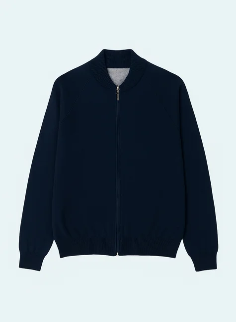 O design apresenta fechamento frontal em zíper, oferecendo praticidade no uso e versatilidade para diferentes composições. A gola levemente estruturada adiciona um toque sofisticado ao modelo, enquanto os punhos e a barra em acabamento canelado proporcionam melhor ajuste ao corpo e reforçam a durabilidade da peça. O tricô possui textura uniforme e acabamento refinado, evidenciando o padrão de qualidade.